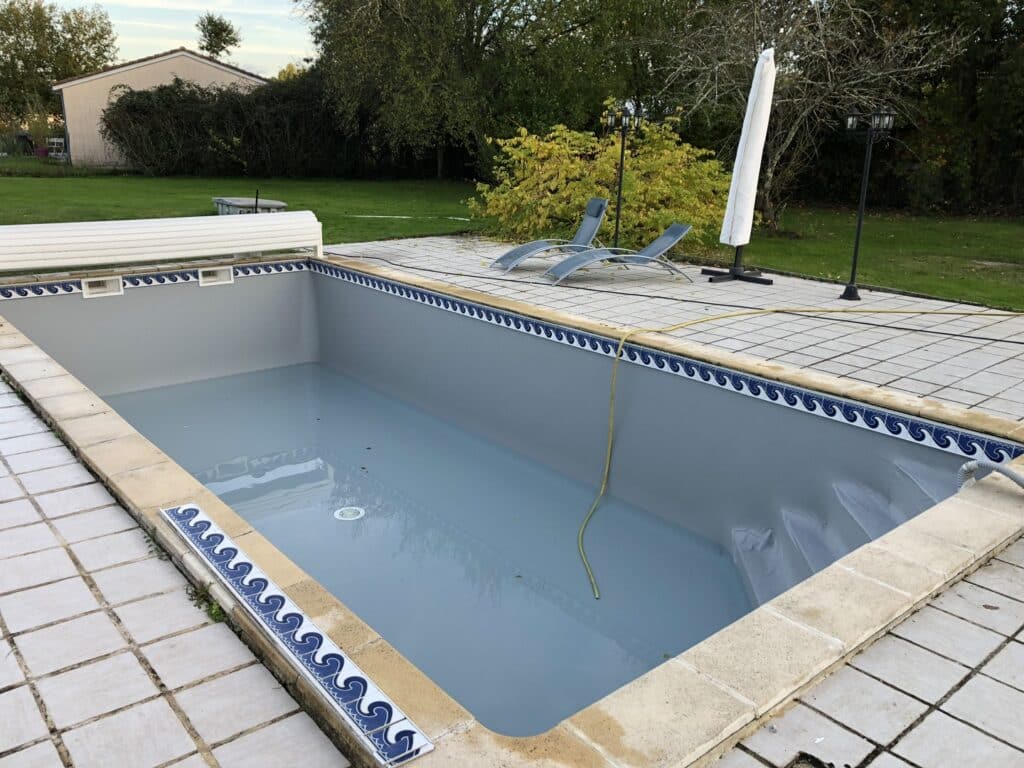 Le propriétaire libournais souhaitait redonner une seconde jeunesse à son bassin rectangulaire sans toucher à la frise carrelée existante ni à son volet roulant automatique. Sa demande ? Une rénovation efficace et esthétique avec pose d’un liner neuf, pour retrouver une étanchéité parfaite et une eau cristalline.